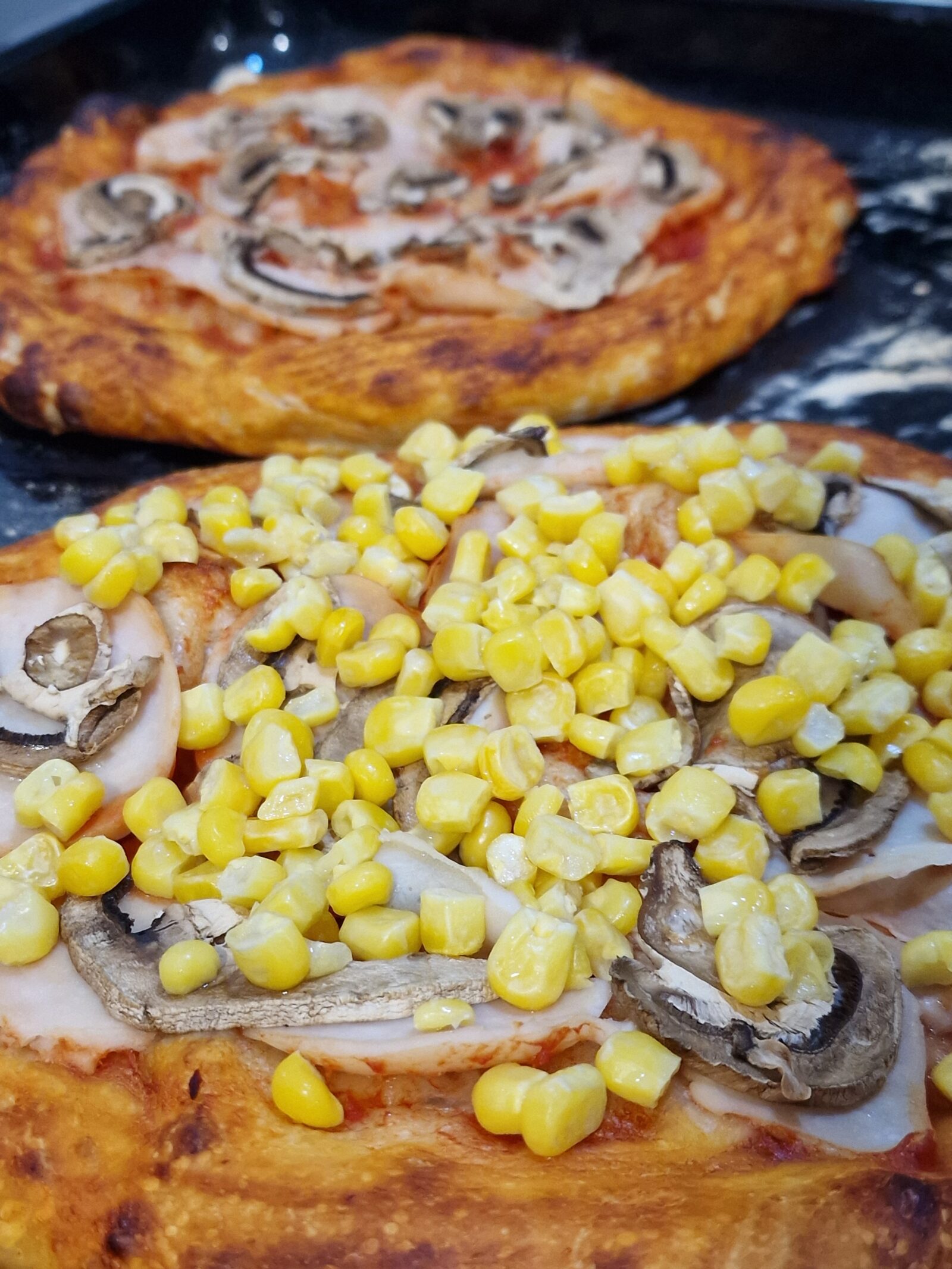 - If you would like to add any additional toppings, such as scrambled eggs, sweet corn, pepperoni, or veggies, feel free to do so now.