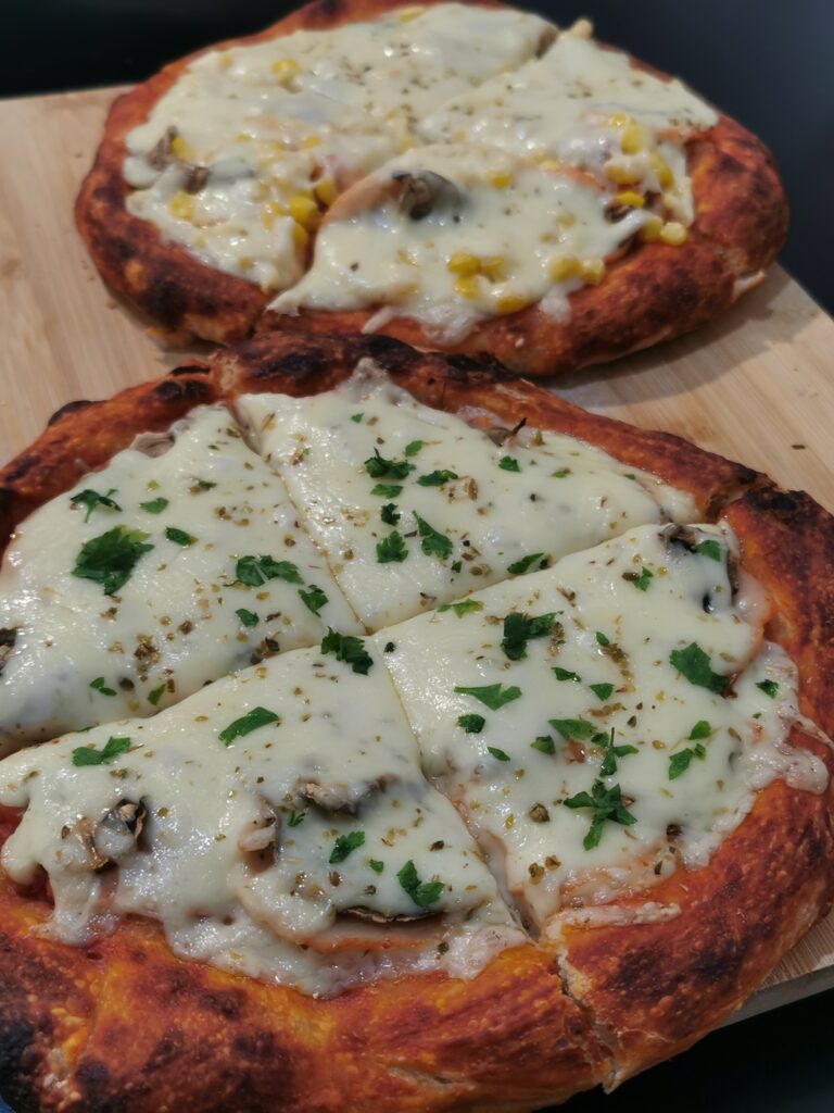 - Remove the pizza from the oven and let it cool/rest for 5-10 minutes before slicing and serving. Season it with salt and pepper to taste.