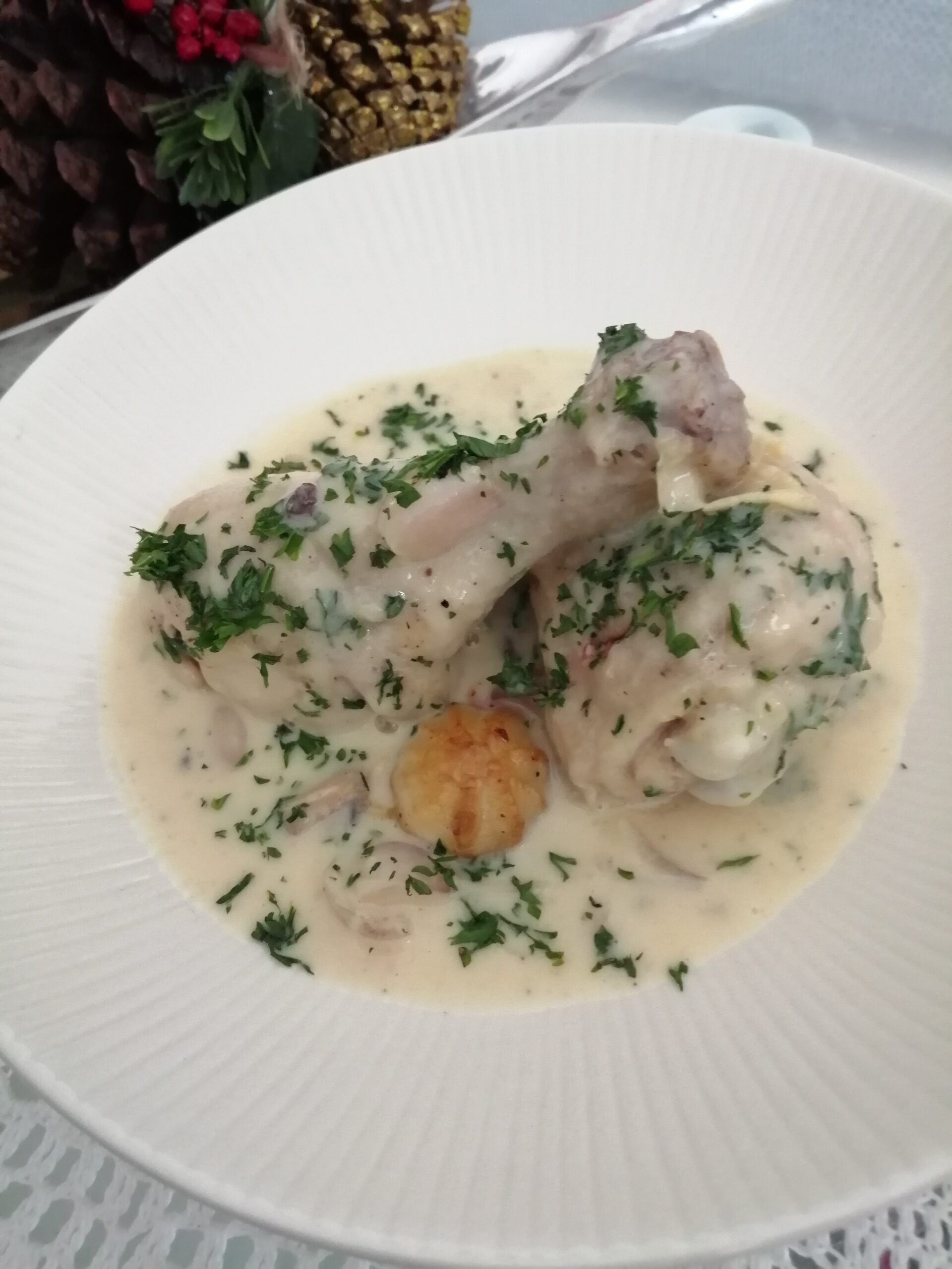 - Mix the yolks and cream in a separate basin. Gently pour a little bit of the stew liquid into this mixture to temper it. Then gently pour the tempered yolks and cream back into the stew on a low heat until thickened. Serve topped with chopped parsley.