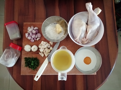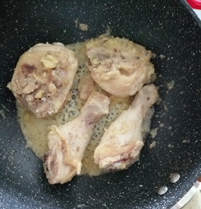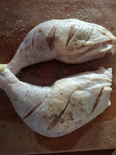 - Separate the chicken into thighs and legs and season with salt and pepper and set aside.