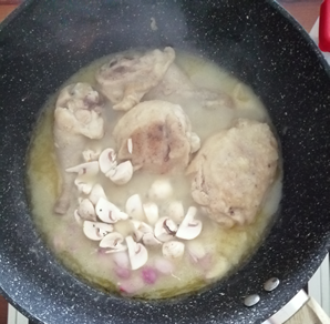 - Add the button onions and the button mushrooms and allow to simmer gently until cooked.