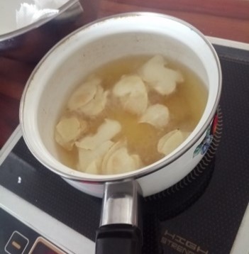 - Heat up the oil (3 cups) in a pot. Once hot, fry the chips until golden brown in color. Remove from the oil and drain on a paper towel. Immediately season with the garlic salt seasoning.