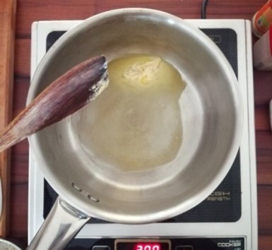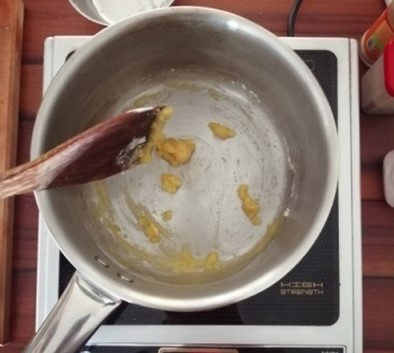 Heat up a heavy-based saucepan on medium heat and add in the butter. Once melted, add in the flour and allow the ingredients to come together to form a roux.