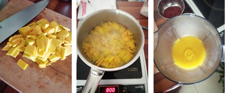 - Slice the pumpkin thinly and boil. Once tender, blend until smooth.
